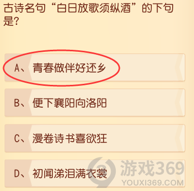 古诗名句白日放歌须纵酒的下句是?梦幻西游三维版科举乡试答题中问了这样一个问题,小黑游戏为大家带来正确答案,还不清楚的小伙伴们一起来看看吧~