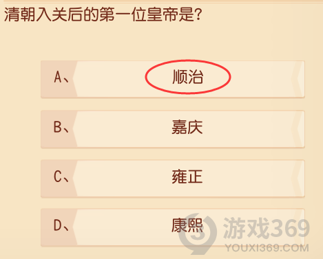 清朝入关后的第一位皇帝是?梦幻西游三维版科举答题中问了这样一个问题,小黑游戏为大家带来正确答案,还不清楚的小伙伴们一起来看看吧~