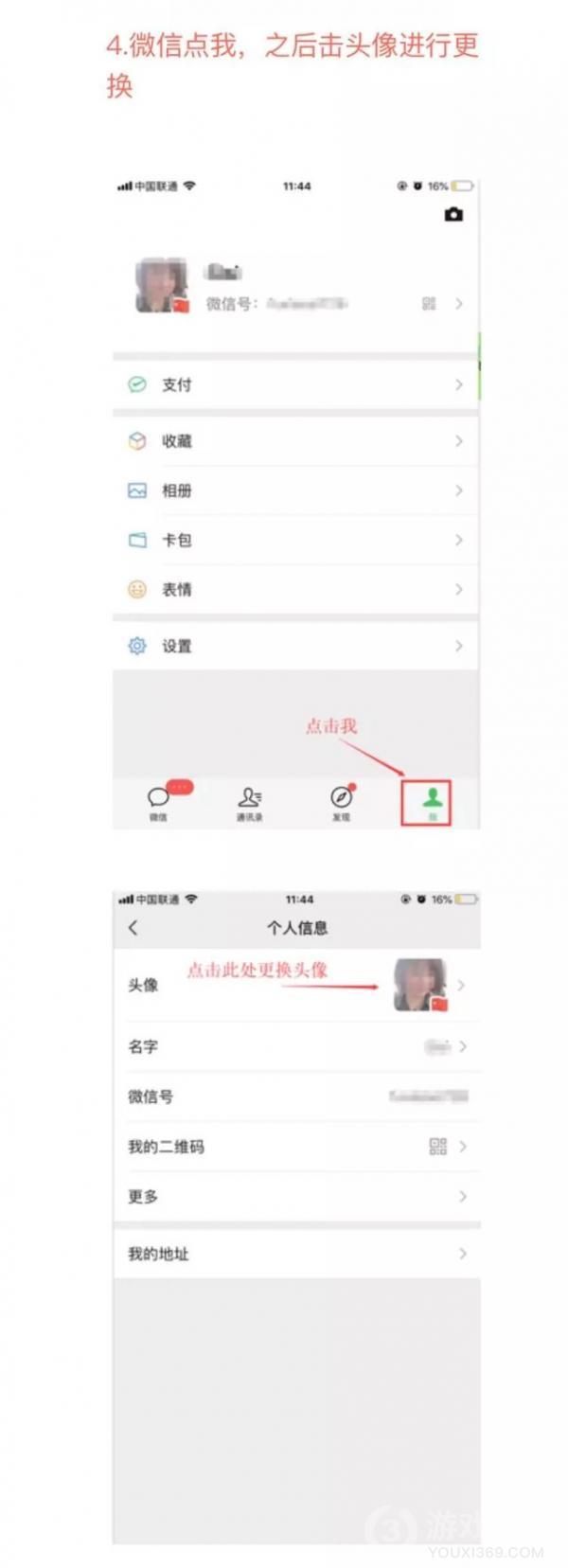 4、微信里点“我”,之后点击头像进行更换
