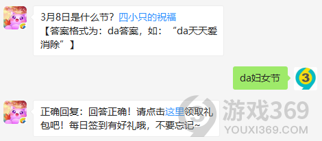 3月8日是什么节?答案格式为:da答案,3月8日天天爱消除每日一题的答案是什么?不知道的喵粉们,进来看看正确答案吧!回答正确即可领取喵星星为大家准备的丰厚奖励了