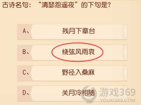 古诗名句清瑟怨遥夜的下句是?梦幻西游三维版科举答题中问了这样一个问题,小黑游戏为大家带来正确答案,还不清楚的小伙伴们一起来看看吧~