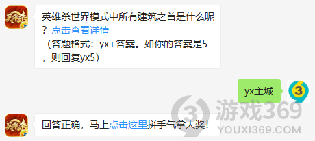 英雄杀世界模式中所有建筑之首是什么呢?答题格式:yx+答案,4月19日英雄杀每日一题的答案是什么?不知道的杀友们,进来看看正确答案吧!回答正确即可领取小师妹为大家准备的丰厚奖励了