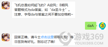飞机总是如何起飞的?答题格式为da答案,4月25日圣斗士星矢每日一题的答案是什么?不知道的斗士们,进来看看正确答案吧!回答正确即可领取雅典娜为大家准备的丰厚奖励了