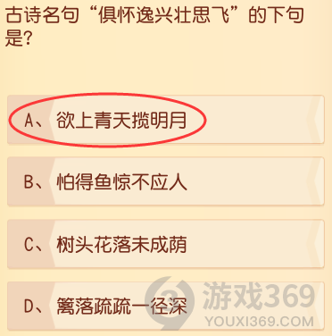 古诗名句俱怀逸兴壮思飞的下句是?梦幻西游三维版科举乡试答题中问了这样一个问题,小黑游戏为大家带来正确答案,还不清楚的小伙伴们一起来看看吧~