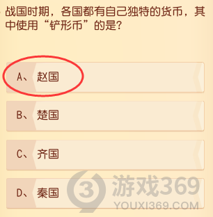 战国时期各国都有自己独特的货币其中使用铲形币的是?梦幻西游三维版科举答题中问了这样一个问题,小黑游戏为大家带来正确答案,还不清楚的小伙伴们一起来看看吧~