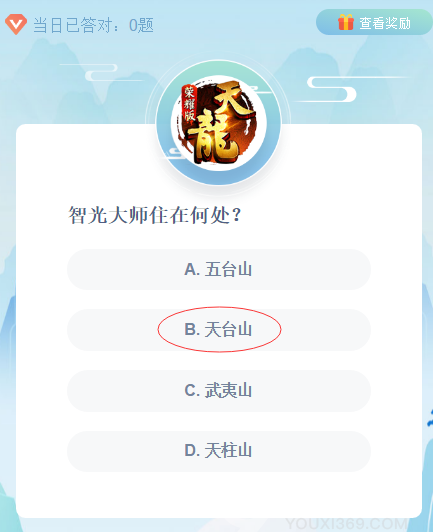 智光大师住在什么地方?天龙八部荣耀版每日一题的答案是什么?不知道的少侠们,进来看看正确答案吧!回答正确即可领取乔帮主为大家准备的丰厚奖励了