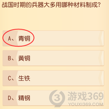 战国时期的兵器大多用哪种材料制成?梦幻西游三维版科举乡试答题中问了这样一个问题,小黑游戏为大家带来正确答案,还不清楚的小伙伴们一起来看看吧~