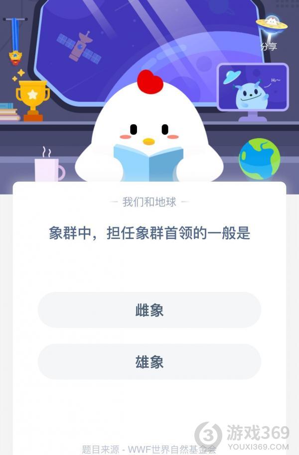 象群中担任领袖的是,可能还有很多小伙伴不知道象群中担任首领的一般是,下面就跟小黑游戏一起来看看今天的正确答案吧,选对答案的话就可以领取180g小鸡饲料了!
