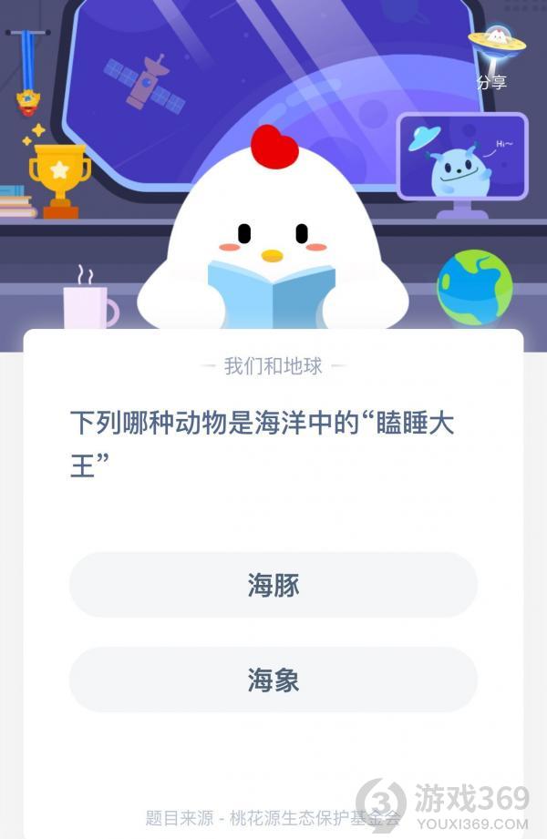 海豚和海象哪种动物是海洋中的瞌睡大王,可能还有很多小伙伴不知道哪种动物是海洋中的瞌睡大王,下面就跟小黑游戏一起来看看今天的正确答案吧,选对答案的话就可以领取180g小鸡饲料了!