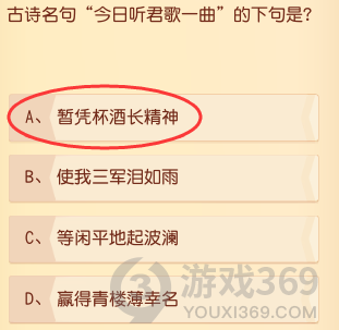 古诗名句“今日听君歌一曲”的下句是?梦幻西游三维版科举答题中问了这样一个问题,小黑游戏为大家带来正确答案,还不清楚的小伙伴们一起来看看吧~