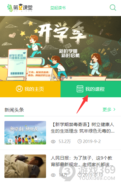2、点击页面上“我的课程”按钮(如图)。