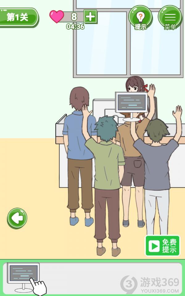 切换到左边场景,点击男主的电脑,回去将电脑给女生。