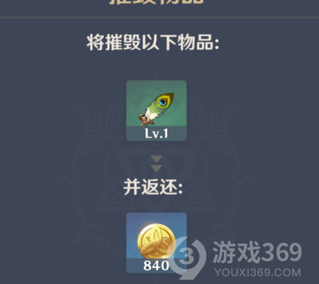 装备分解,注意武器分解只会得到狗粮,圣遗物则是可以分解会获得摩拉,但不太推荐,毕竟圣遗物没有通用狗粮,要升级圣遗物就得用圣遗物堆,本来狗粮就不怎么够用了