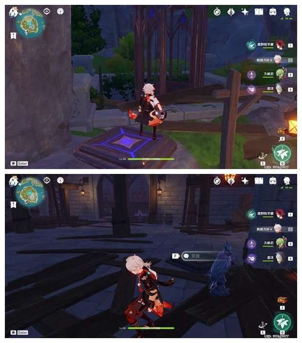 走几圈(传到其他地方),然后来到下面的位置(台阶,在游泳池旁边的第一步),会看到朱丽叶周围的一群乌鸦,对话得知罗密欧被丘丘人抓住,对应故事