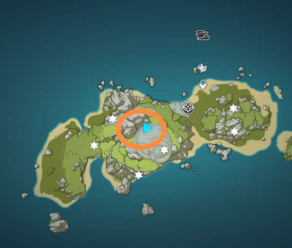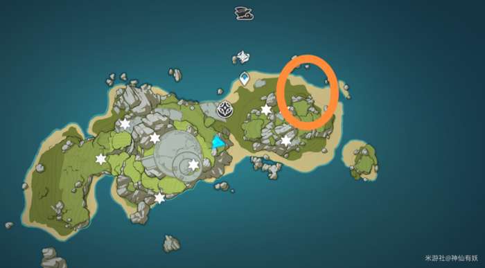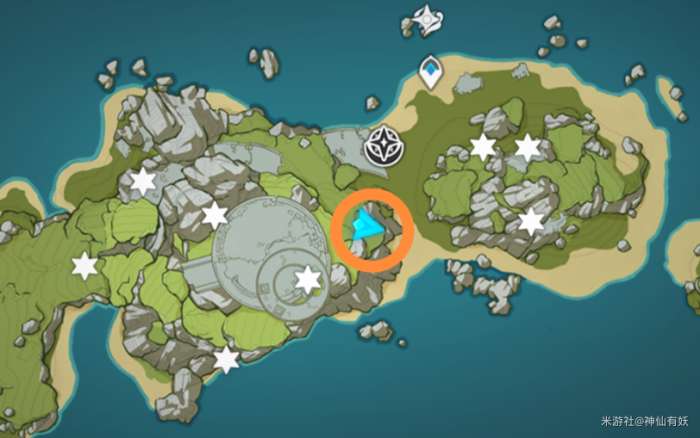 从山顶下飞,到地图这个位置,你可以看到我们的第五个凝核