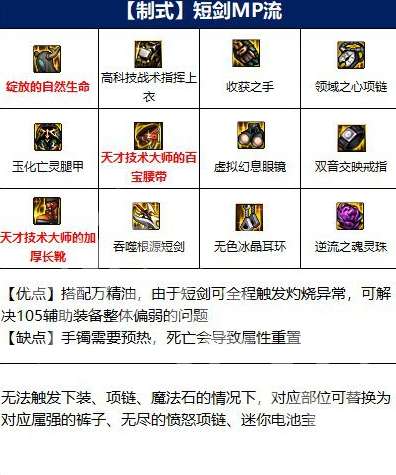 【优点】搭配万金油,可以解决105辅助装备弱的问题,因为短剑可以全程触发异常燃烧。
