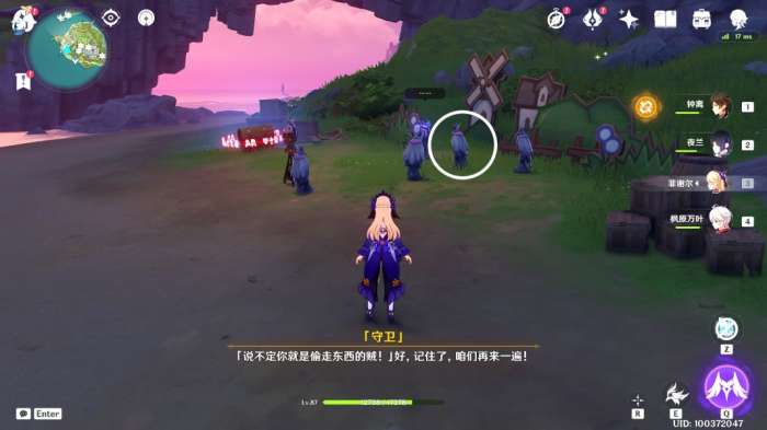 (2)指认「尽责的守卫」,在我们对面,带红围巾的夜鸦