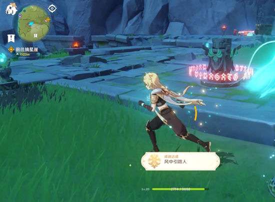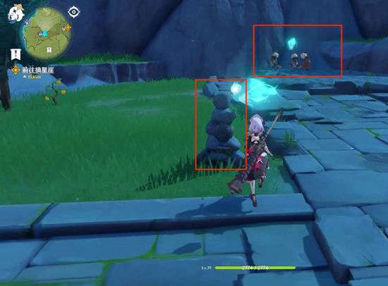 1、先打掉一叠石头,发现第一个机关,再去清理丘丘人,发现第二个机关。