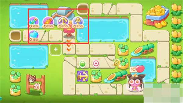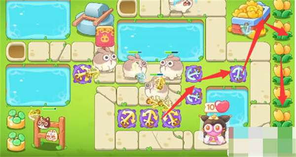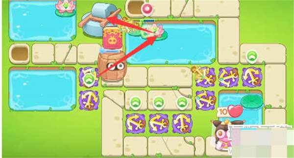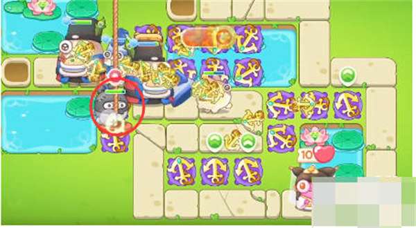 4:然后用船锚的溅射伤害清理所有道具,然后我们可以用荷花玩,然后把炮塔放在荷叶上,然后小心我们的绳兔;