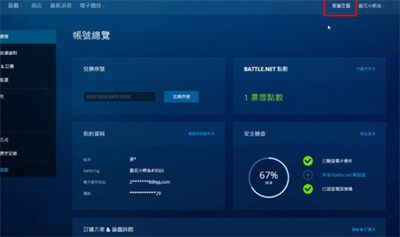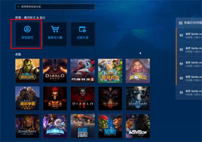 1、玩家首先使用加速器进入战网亚服,点击左上角进入“我的账号”。