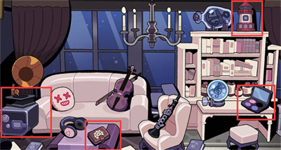 3:游戏室,答案是35,鳄鱼是密码箱,然后其他的两个物件按照页码顺序填入即可;