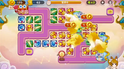 2、接着再锁定下方的钱袋,钱袋打掉之后,在钱袋的位置建立一个三级的喷火器,锁定右下角的钱袋,今天只有两个钱袋,所以分数很难高,只能尽量无伤。