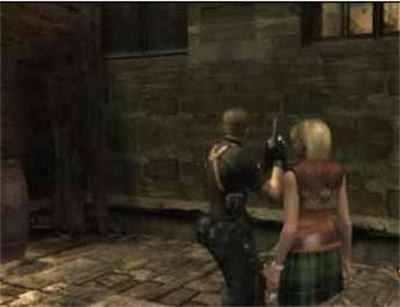 4、再回头,杀掉B屋上丢炸药的敌人。以后LEON每次走图中红点的地方就会刷新敌人;