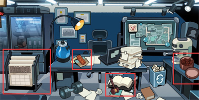 如下图所示的三个位置,鳄鱼是密码箱,按照另外两个物件右下角的页码顺序填入数字即可。