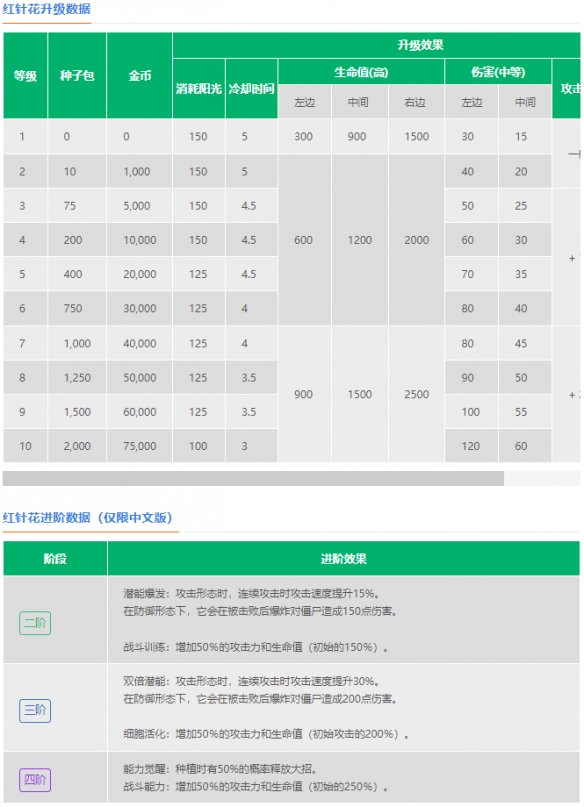 以上就是植物大战僵尸2红针花技能介绍,这是一款人人都知道的经典策略塔守游戏,在对画面进行改善的过程中,使用了少数3D的要素,对植物与丧尸的攻击效果进行了充实,同时还将对硬件进行了进一步的提升,从而降低了一些设备在人群聚集的时候会产生的卡顿现象。