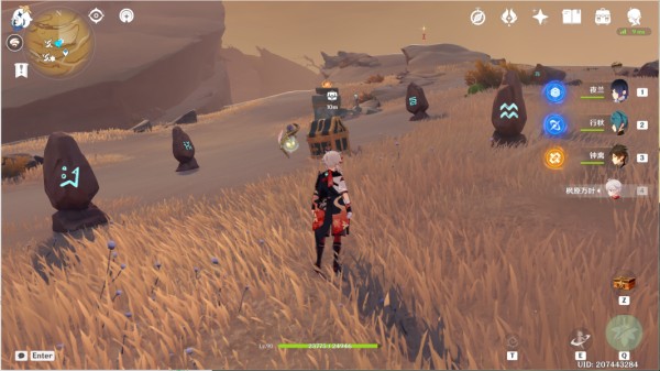 2、千壑沙地第5个指引仙灵的位置在巨人峡谷的上面,跟着仙灵顺时针走,依次攻击风化碑石即可解密成功,第5个指引仙灵就在上风化碑石上面。