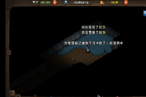 完成以上全部条件后,由猪圈北面一格以轻功,跳入读书岩中入洞,需雁行功九重,点燃火折子以维持照明,(注意:经过多次试验,没有点燃折子的人将直接负伤回到定点客栈跋山涉水也不用)水飘至水潭中任一处等落水即可入洞(落水将受轻伤,先下随从以节省药物)。去溶洞末端水潭(25,13)(需要水上漂,火折子没有点不着机关)寻找会发现一个机关,打开后去(10,8)寻找文皇经。