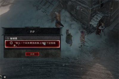3、拾取纸条自动接取任务,将纸条带给罗萨。