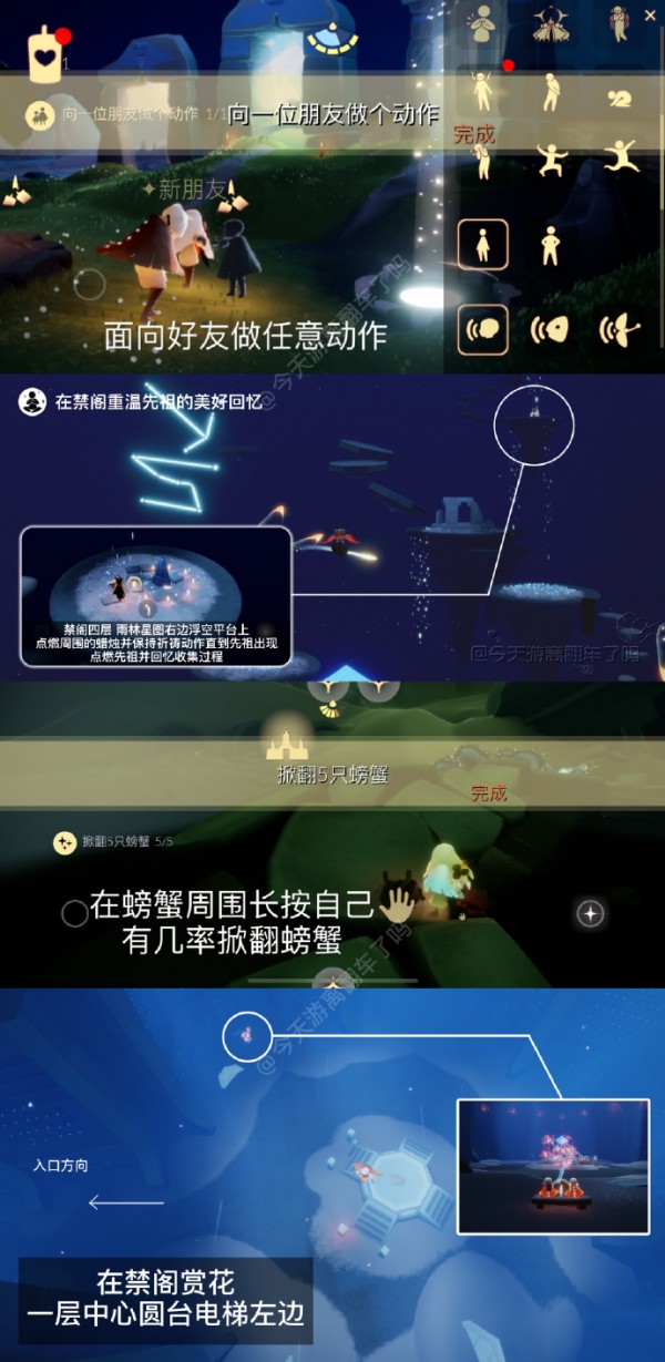 Sky光遇2023年3月28日每日任务完成攻略,Sky光遇2023年3月28日每日任务分别是在禁阁重温先祖的美好回忆、向一位朋友做个动作、掀翻5只螃蟹、在禁阁赏一会儿花。下面小编给大家详细介绍下,还不清楚的小伙伴们快来看看吧!