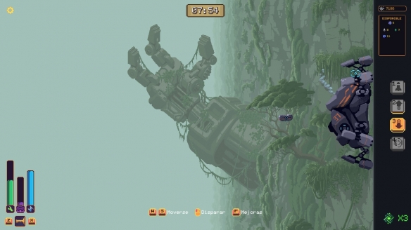 至于打boss,很明显我们需要攻击他肚子上那个蓝色小球,但是初始机枪抖的一批还得兼顾清怪,所以打boss其实要靠家里升级的那个 按1键使用的技能导弹