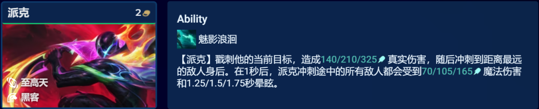 阵容的主要输出就是派克与莫甘娜。通常是双C,这两枚棋子技能均有控制,阵容控制能力较强。