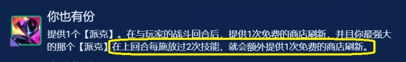 派克在满装备下一局中稳定2次技能释放,多的时候能达到4次,这样每次与玩家对战后就能获得2-3次的免费刷新,阵容棋子更容易追出三星,阵容成型难度大大降低。
