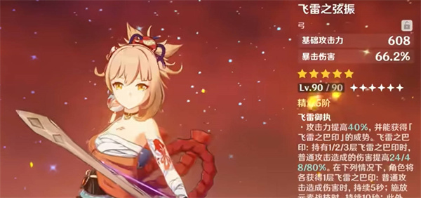 5:专武飞雷的加成是非常的高的,毕竟词条是尊贵的暴击伤害,当然你没有的话,可以用精五的弓藏进行代替的。