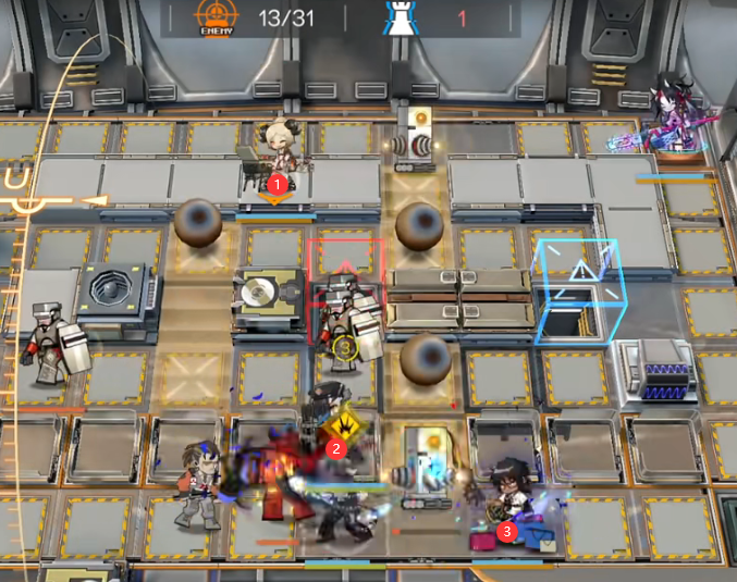 ① 如图所示顺序部署煌 → 棘刺 → 山(向上加攻速),棘刺和山技能好了就开。