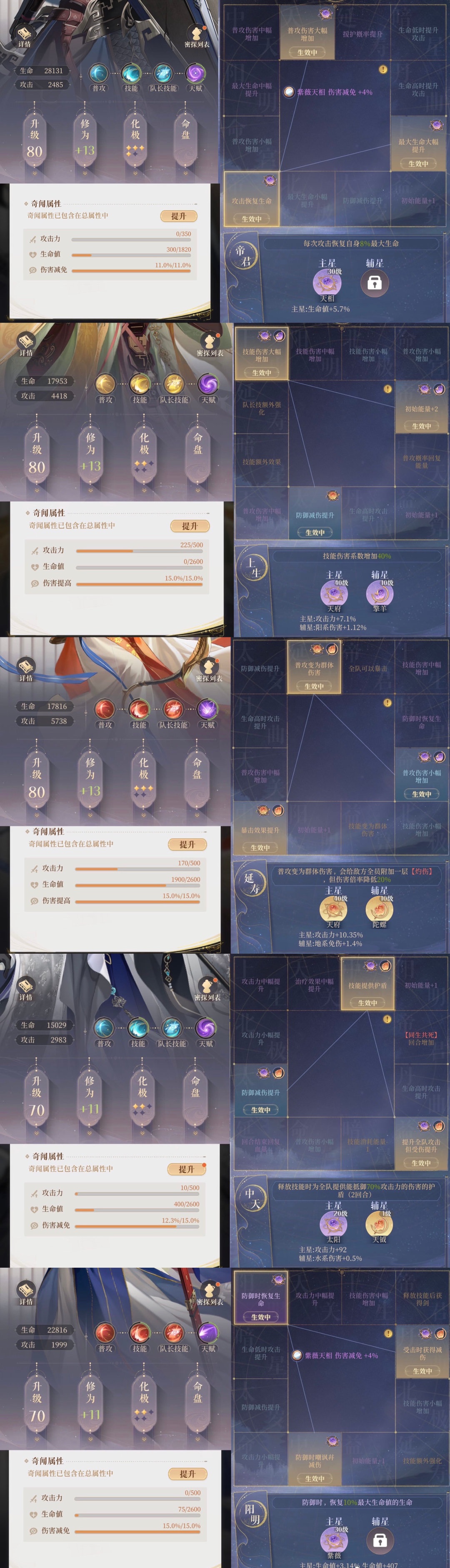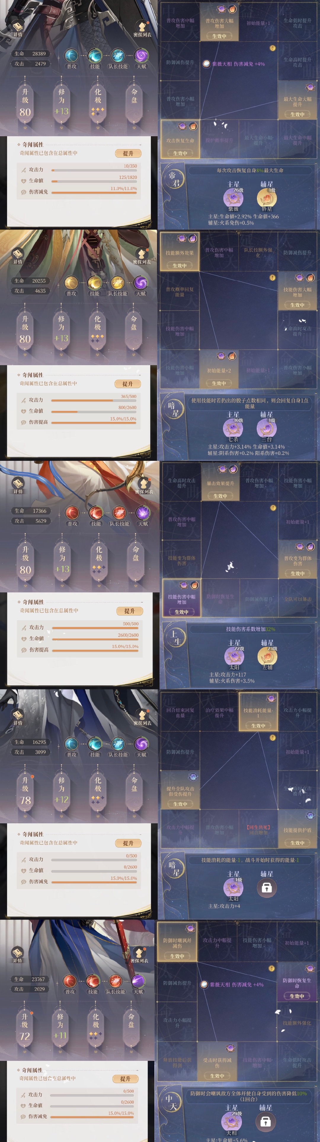 3、除了等级、修为、叠星,漆园蝶和星石也很重要。比如80+13的4星白板颜良肯定不行,得喂很多其他的资源。