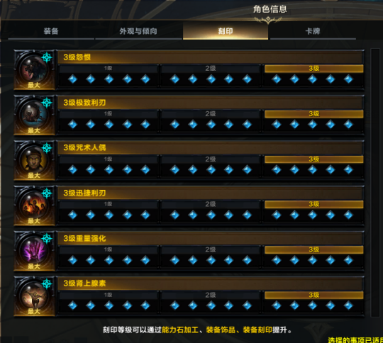 提示:这里只是列出该职业的可选刻印,意思就是实际配置时从这里面几个里选,并不是让你全部配上