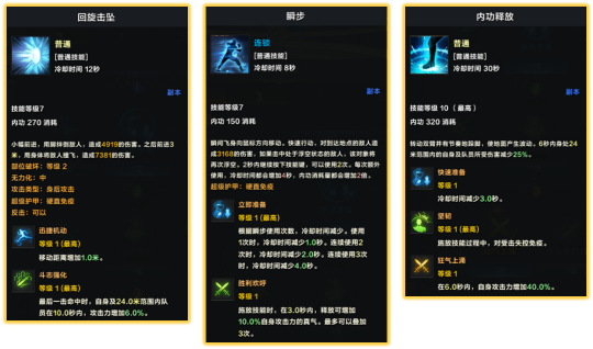 宗旨:将自己尽量多的技能打进三大的BUFF覆盖区内(回旋击坠,瞬步,内功释放)