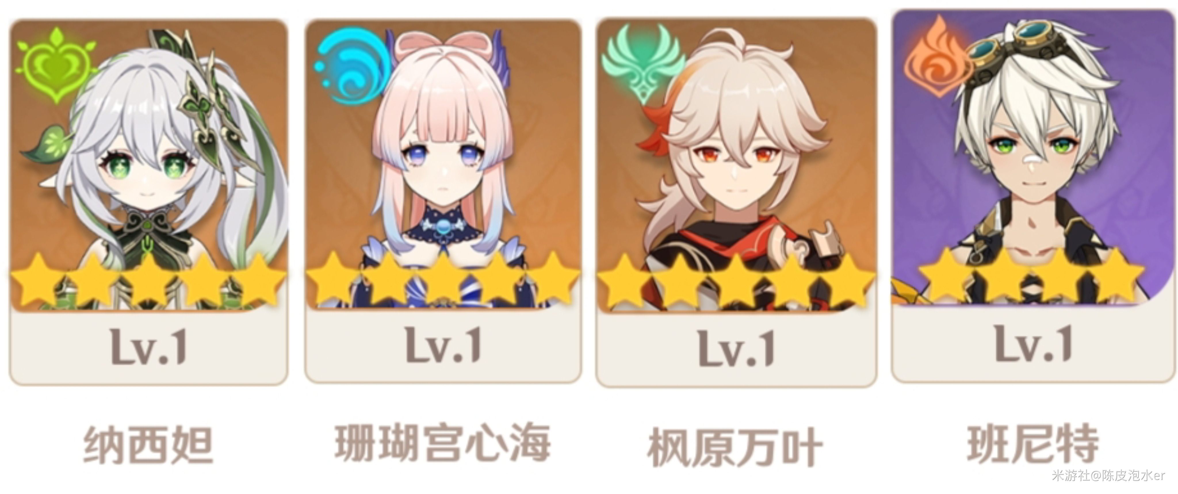 【万叶烈绽放】:纳西妲+心海+万叶+班尼特