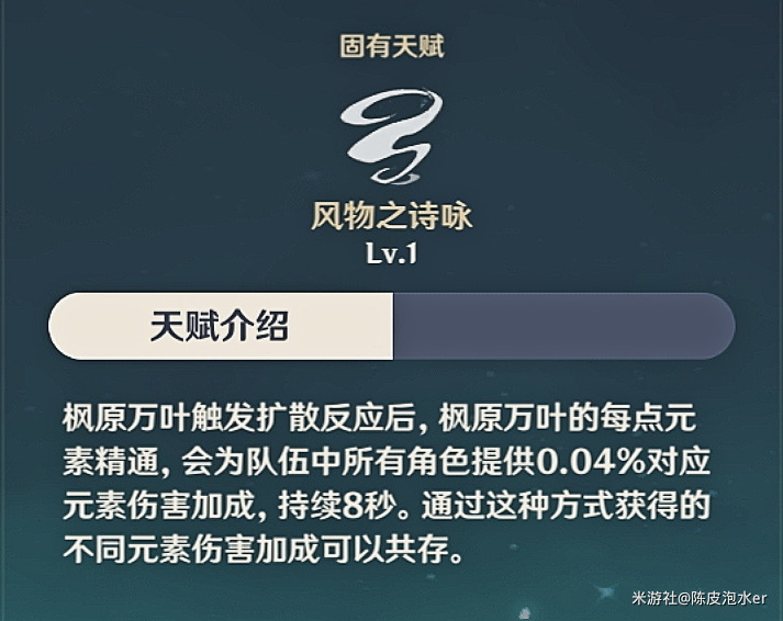 在这个队伍中,只需要万叶的聚怪功能和固有天赋2的增伤功能,万叶开不开大都无所谓,所以万叶选择铁蜂刺。