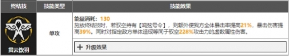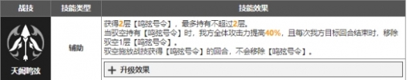 1、此技能释放需要消耗驭空的130能量值,释放后,将会持有【鸣弦号令】的被动技能,并且额外的提升团队内的21%暴击效果和39%暴击伤害。