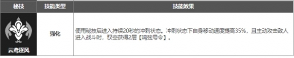 1、拥有较强的辅助性能,也是运用到驭空的强化属性,开启此秘技技能,提供20s的冲刺效果。