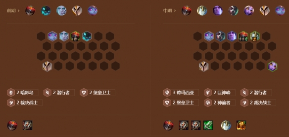 过渡阵容比较灵活,两星【雷克顿】也可以用来过渡,【2斗士】搭配【2亡眼射手】。【斯维因】带两个【泰坦】过渡也比较猛。