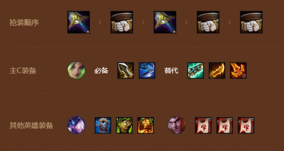 优先三基克,依靠基克的高攻速的枪手的攻击力速杀对面,后续装备就慢慢补出主c的爆发装和打坦克的装备,肉装给到猪妹。