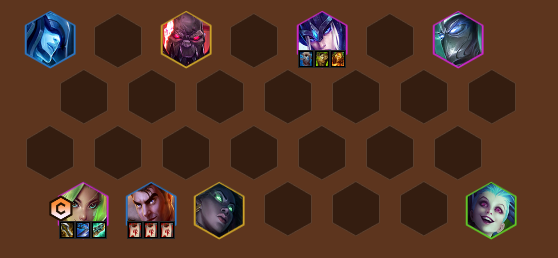 2-1拉4,2-5拉5,3-2拉6,4-1拉7优先找到1星厄加特搭配4祖安3巨神,后续直接拉8人口找到全员2星