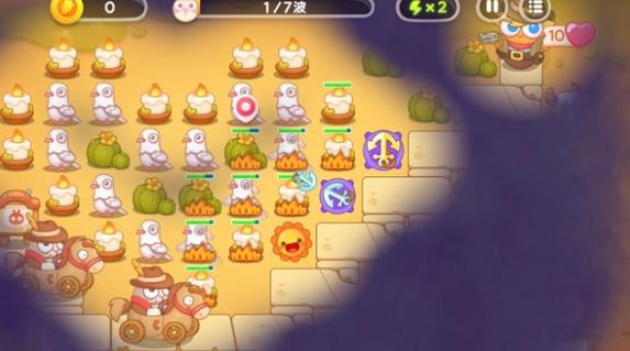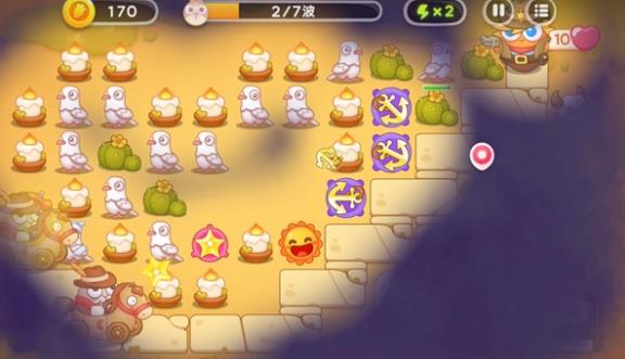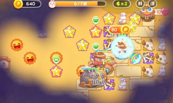 4、可以加2个星星塔,慢慢开始清理左侧,第4波出来飞行兔及时防备。