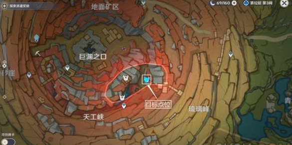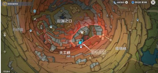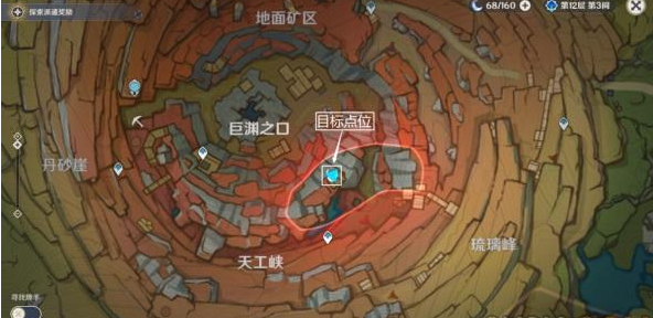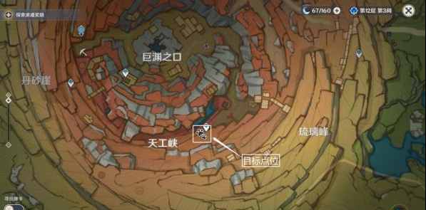2.如下图目标点位所示,位于层岩巨渊天工峡东方向。